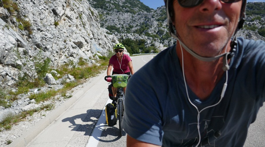 Nous sortons de la Bosnie par la triste ville de Bileca, et c'est en montagne que nous arrivons au Monténégro par une petite frontière, beaucoup de voitures arrêtées avec des douaniers qui ont tout leur temps. Nous nous faufilons et nous passons assez vite. Ici c'est l'Euro à nouveau mais pas un distributeur en vue, nous sommes en pleine montagne et nous sommes fauchés. Un premier camping après la frontière avec un petit resto, on s'y voyait déjà mais sans le sou en poche, il faut filer son chemin. La veille on avait vidé nos poches d'euro, de kuna et de mark pour payer notre nuit, on avait à peine le compte. Après une nuit en sauvage, c'est dans une station service que nous pouvons enfin avoir un peu de cash. Les kilomètres défilent sur des plateaux dans les montagnes c'est beau et grandiose. Sur la carte les villages indiqués ne sont dans la réalité que quelques maisons. L'heure du café approche et là ce n'est pas un mirage, nous nous arrêtons chez Mitcho qui boit de l'eau de vie avec un copain. C'est un café rustique entre débarras et ferme. Nous y sommes bien accueillis et à l'aide de notre carte ils nous expliquent l'histoire de la région avec l'occupation des Ottomans, des Autrichiens et nous buvons un café turc. Mitcho nous propose de découvrir son lieu, élevage de poules, de chèvres, de cochons le tout gardé par trois gros chiens. Un moment comme nous les aimons bien, le tout en Monténégrain bien sûr. Nous reprenons la route, passons un petit col et découvrons Les Bouches de Kotor, splendide baie fermée telle un fjord. Nous profitons d'une journée de repos pour visiter et gravir les remparts de la forteresse de Kotor. Le petit camping dans lequel nous sommes au bord des bouches de Kotor, nous pemet de faire une pause, un peu de lessive (mince y'a pas de machine!) et de passer du temps avec deux suisses Sabrina et Frédéric partis depuis début juillet qui comme nous relient la Turquie, voire l'Iran car ils pensent rentrer fin décembre.